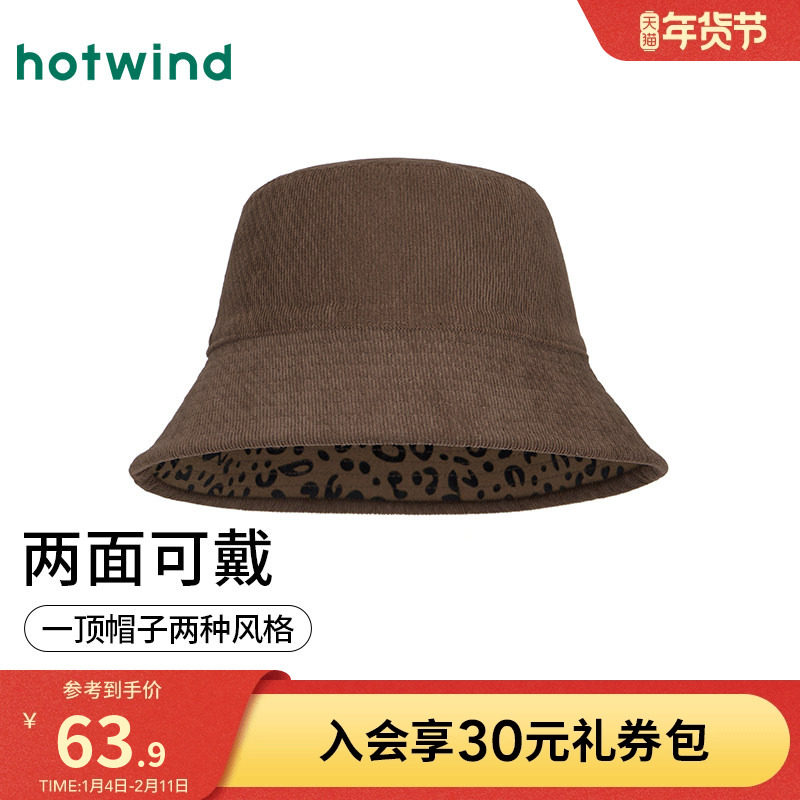 热风女士帽子棕色渔夫帽2025年冬季新款时尚双面戴豹纹灯芯绒帽子