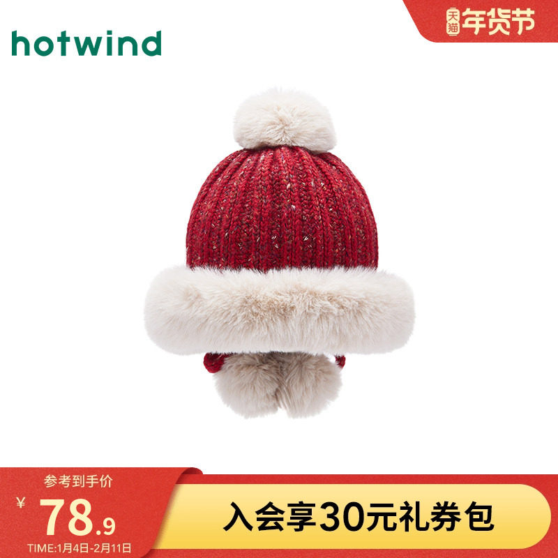 热风女士帽子2025年冬季新款厚款拼接护耳毛线帽圣诞毛绒保暖帽子
