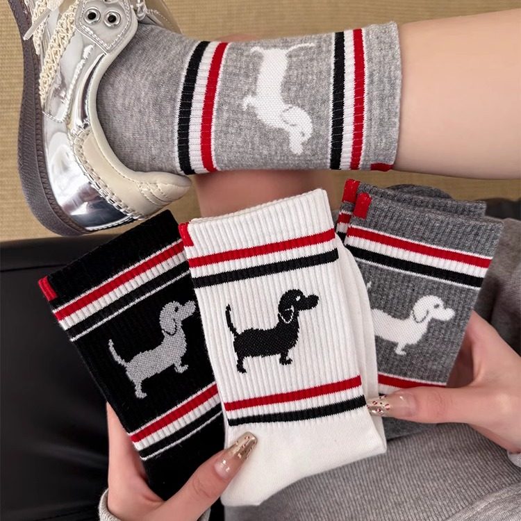 春夏季TB条纹小狗袜子中筒韩系情侣卡通ins潮袜个性高级简约感袜