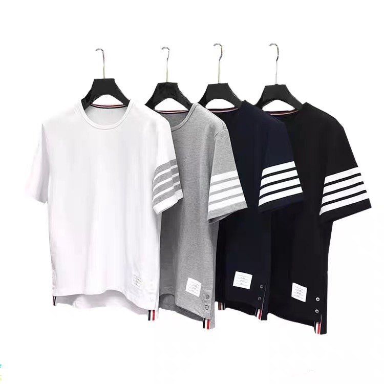 TUMA TB情侣四道杠圆领条纹短袖纯棉条纹彩带男女T恤色织半袖潮