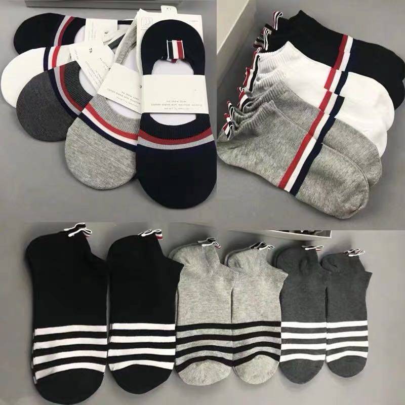 男女情侣款袜子短袜TB风四杆条纹吸汗透气春夏季薄款运动短筒船袜