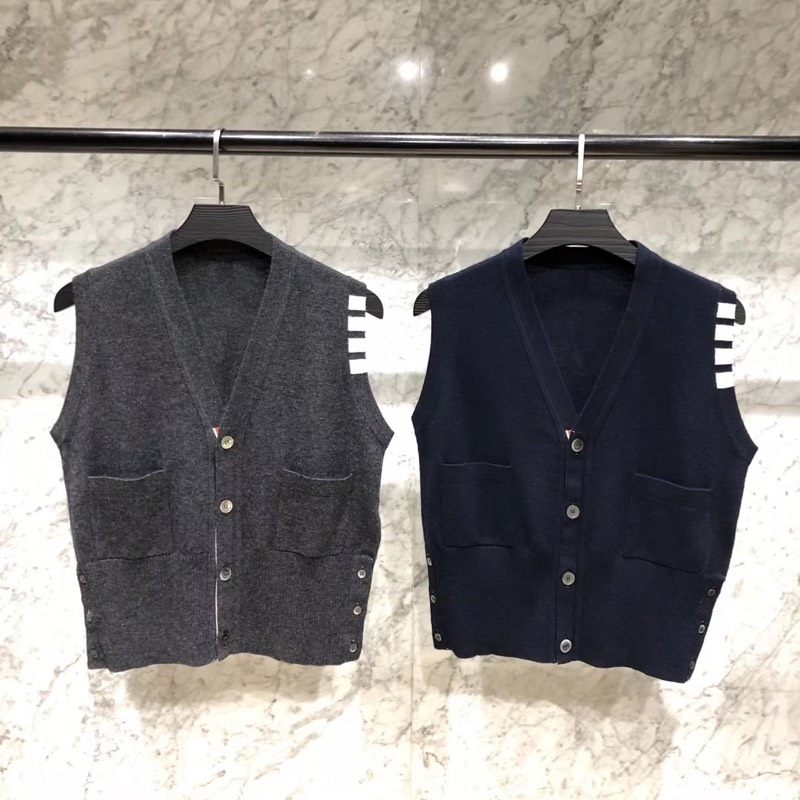 TUMA TB春夏羊毛柔软针织圆领马甲四扣V领情侣款四杠毛衣背心潮