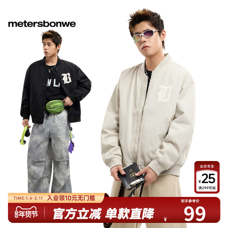 美特斯邦威棒球领棉服男冬季贴布绣潮流棉衣舒适外套保暖夹克上衣