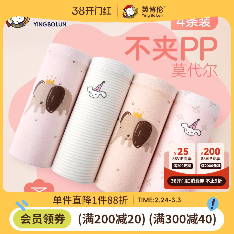 英博伦儿童内裤女童纯棉a类平角女孩中大童莫代尔三角裤四角短裤