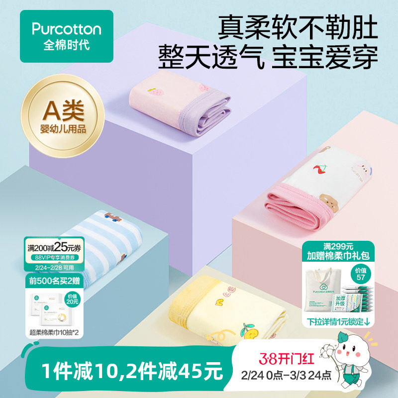 全棉时代2条装儿童a类纯棉内裤男女孩学生短裤宝宝三角裤不夹屁屁