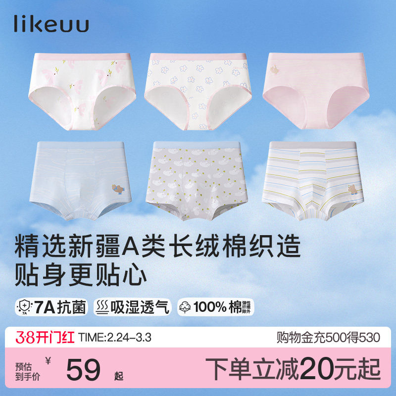 ubras旗下likeuu儿童女孩三角内裤短裤7A抗菌透气男童纯棉a类四角