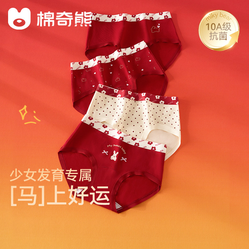 内裤女士纯棉抗菌裆新款日系少女学生三角裤全棉大童短裤红色青春