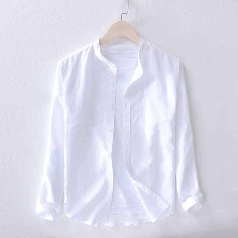 - 棉麻立领衬衫