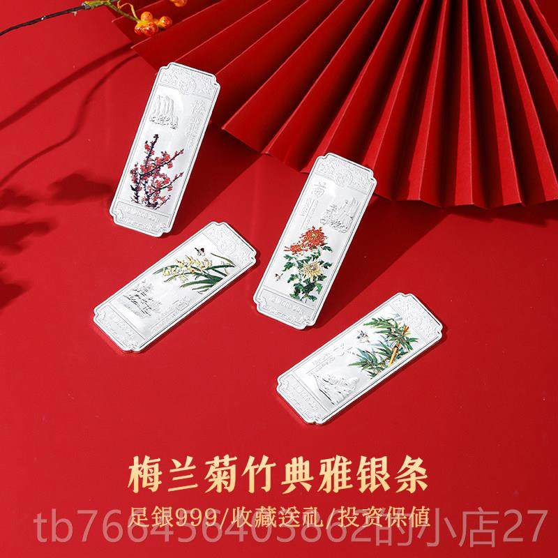 新款尚藏缘银楼999纯银银条套装件梅兰竹菊彩摆绘银条品投资收礼