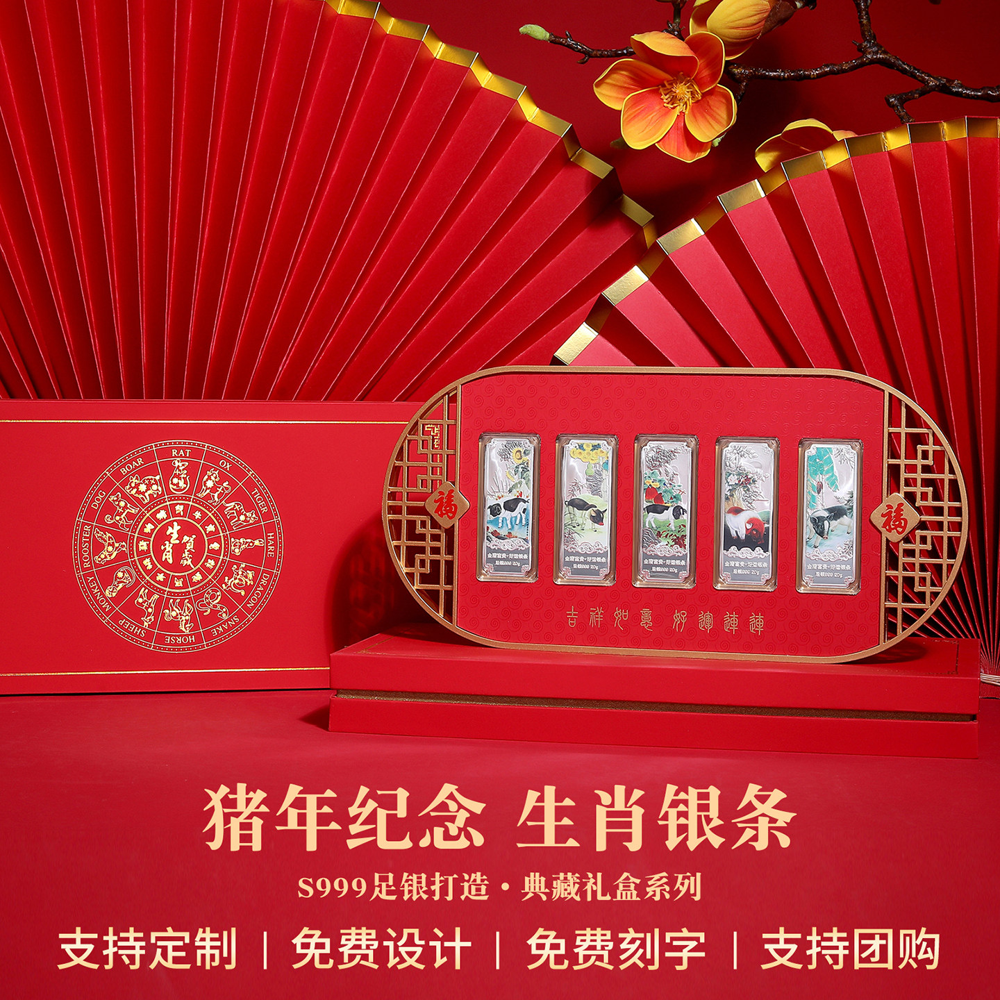 猪年生肖纯银银条套装摆件贺岁纪念收藏公司年会定制高档纪念礼品