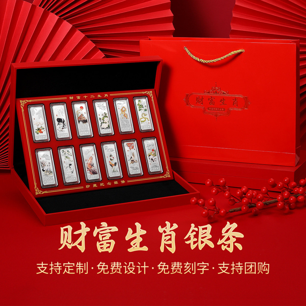 高档品尚缘99纪9生纯银银条套装贺岁念摆件收藏礼品蛇年生肖银肖