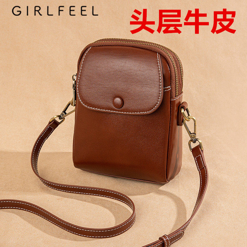 真皮女包小2025新款新潮植鞣牛皮手机包复古斜挎包单肩包软皮包