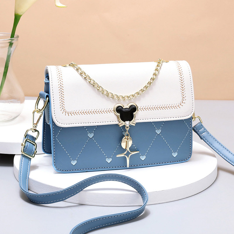 可爱碎花kitty拼接单肩包少女心百搭通勤包包便携手提包高颜值