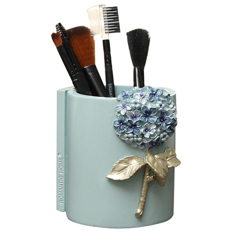 欧式文具商务笔筒创意时尚多功能树脂圆形精致摆件桌面收纳盒简约