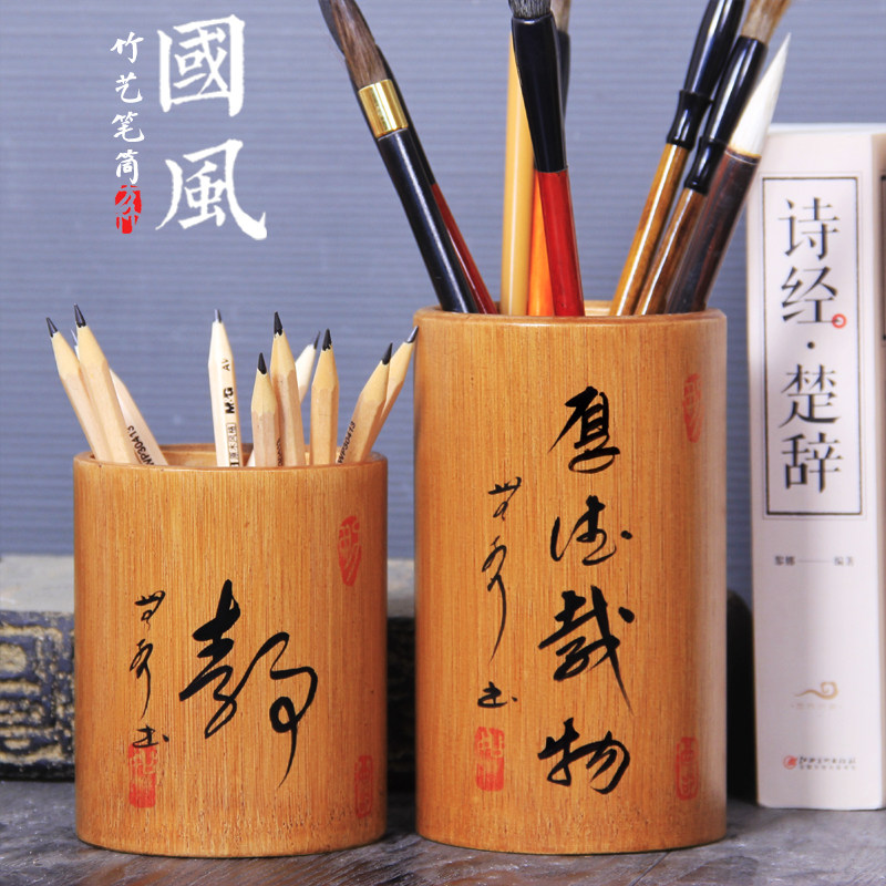 创意定制竹制毛笔筒 手工复古风商务礼品学生老师生日奖赠品国学