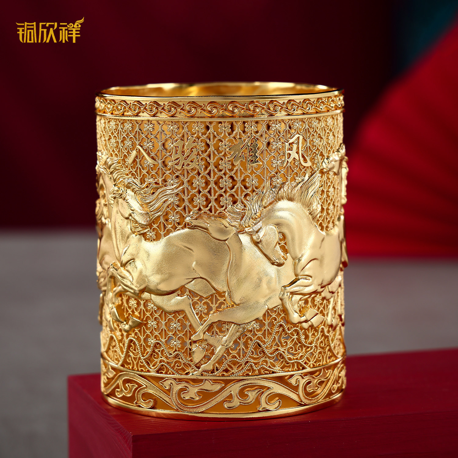 铜欣祥彩铜花丝骏马笔筒八骏雄风书房办公室笔筒摆件开业商务礼品