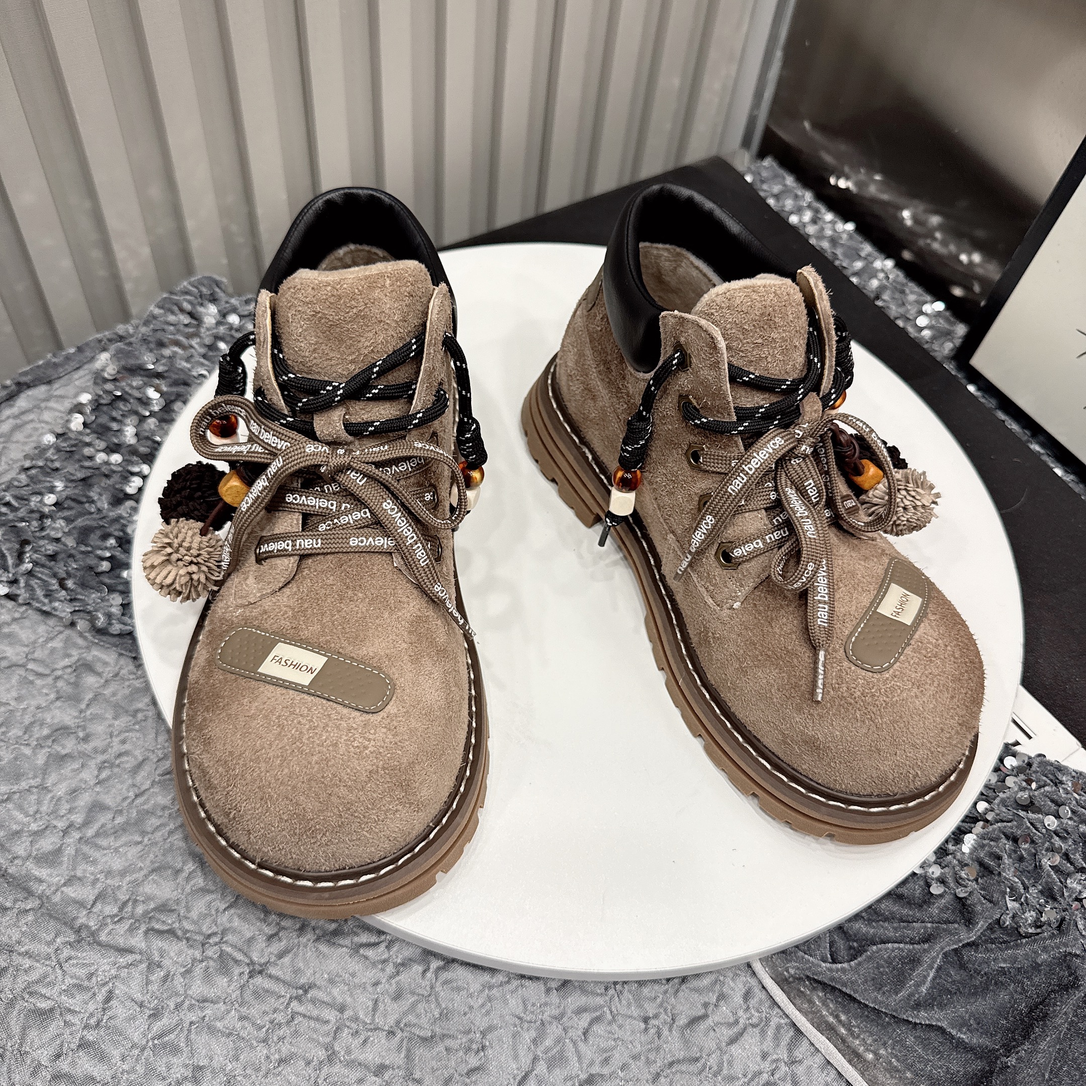 - 女真皮系带短靴子