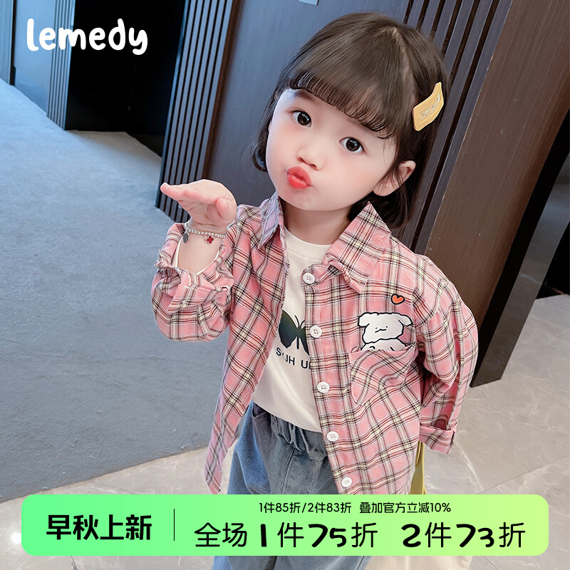韩国Lemedy女童格子衬衫春秋季2025新款儿童薄外套小女孩长袖衬衣