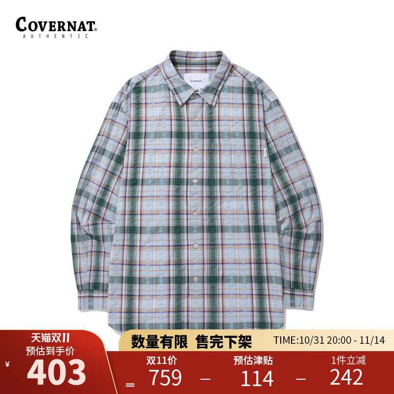 covernat韩国潮牌衬衫外套纯棉时尚透气格子春秋美式复古宽松男女