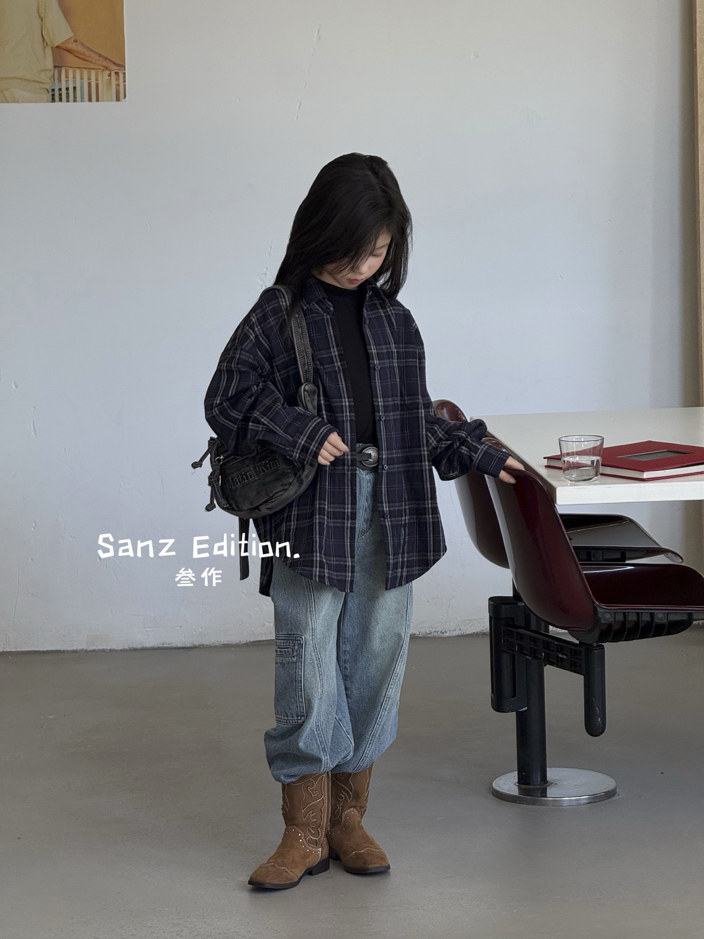 现货2025秋款叁作波拉BORA男女童宽松磨毛格子衬衫衬衣外套亲子