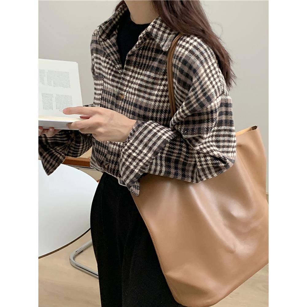2025韩版新款美式复古磨毛格子衬衫外套女宽松休闲慵懒风长袖衬衣