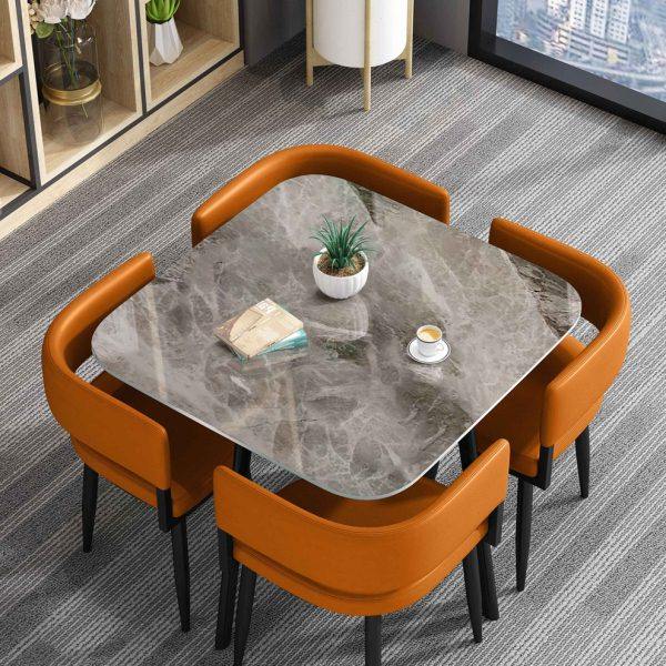 极简家具隐藏式喝茶桌轻奢休闲方形茶几台岩板石面洽谈桌配座椅子
