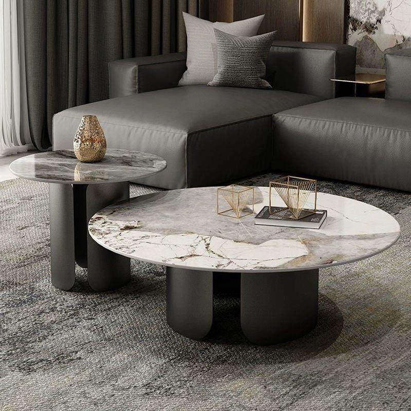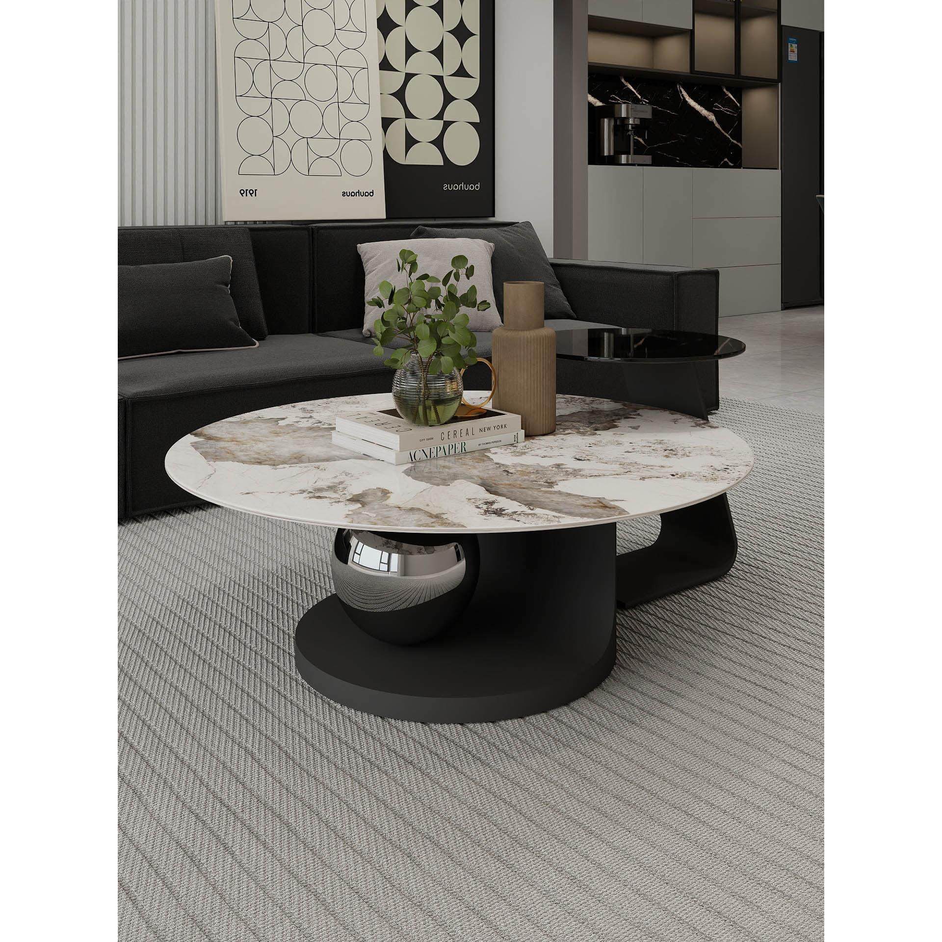 小户型高级极简家具潘多拉岩板圆形茶几组合意式轻奢现代客厅家用