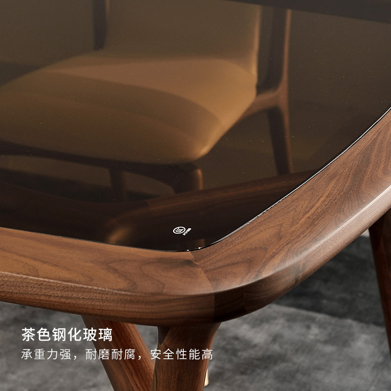 北美黑胡桃木餐桌椅意式极简家具北欧实木钢化玻璃餐台轻奢大户型