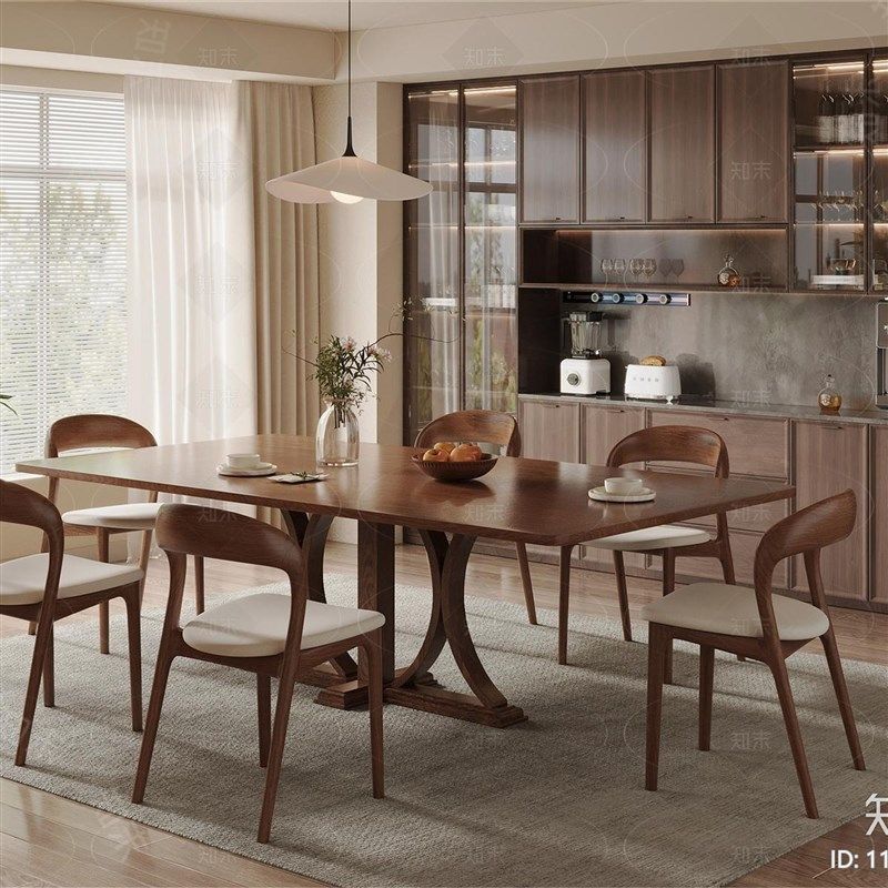 中古风实木餐桌椅组合简约现代覆古样板间家用吃饭桌极简家具定制