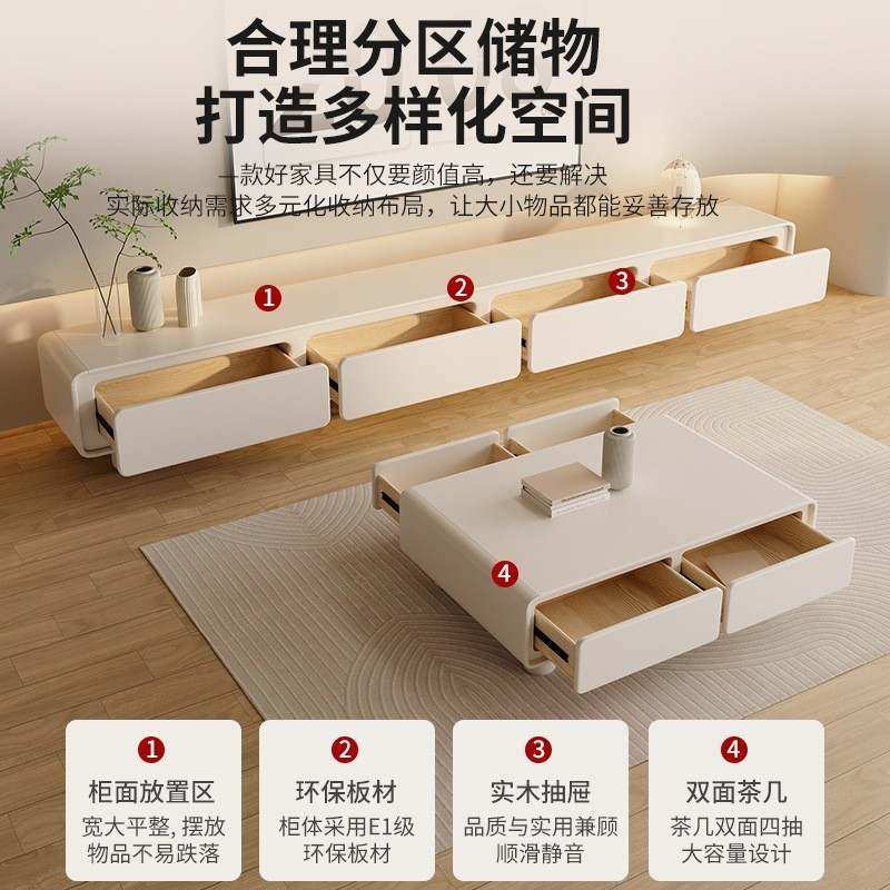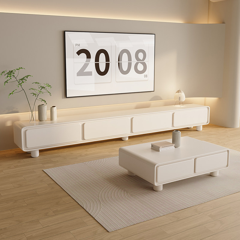 圆角法式奶油风白电视柜茶几组合客厅家用简约现代小户型极简家具