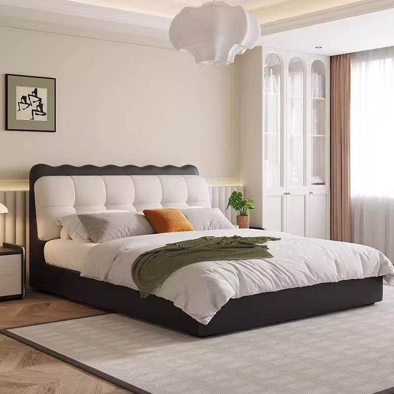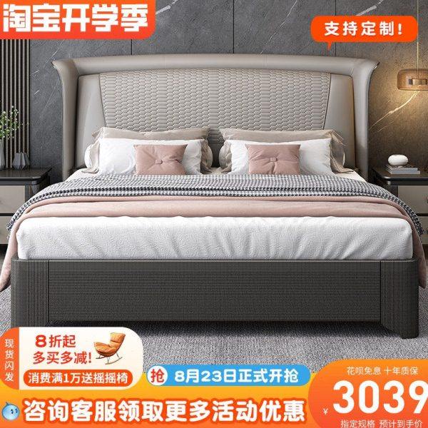 意式轻奢床真皮现代简约主卧高靠背双人高端大气极简家具2023新款
