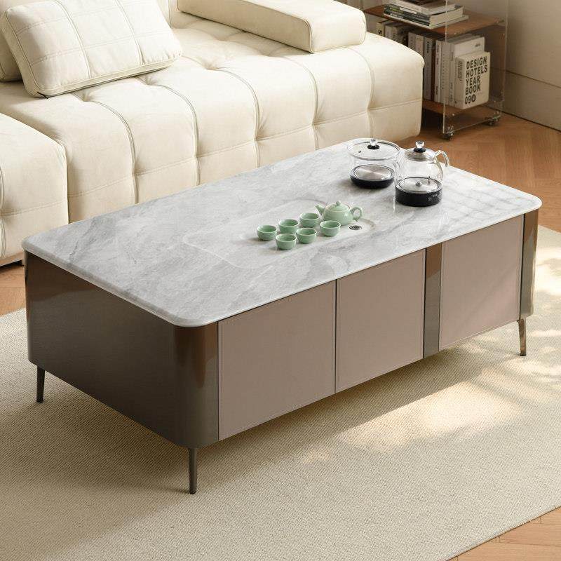 新款超晶石大理石功夫茶几电视柜实木客厅意式极简家具马鞍皮茶桌