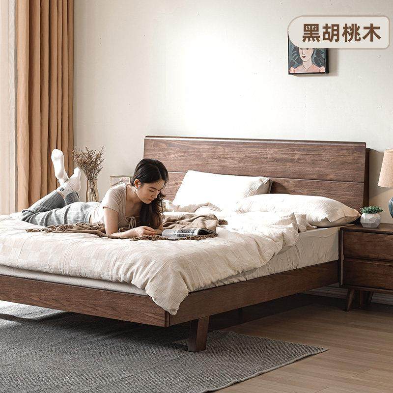 纯实木黑胡桃木奢华主卧双人床婚床小户型1米5单人床卧室极简家具