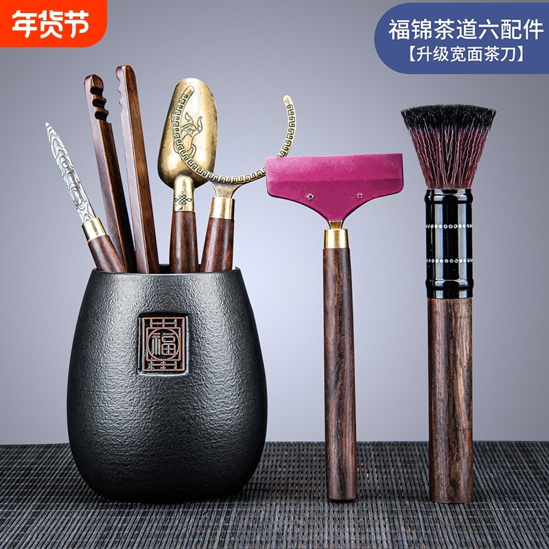 鎏金茶道六君子套装家用功夫茶具零配件黑檀木纹茶夹茶针茶勺茶笔
