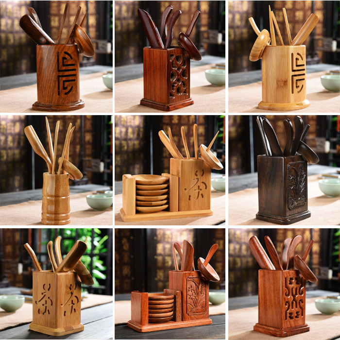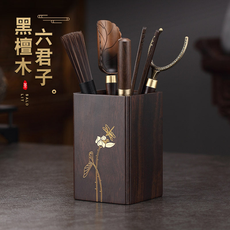 从简 黑檀木茶道六君子套装黄花梨实木茶筒功夫茶具配件整套6君子