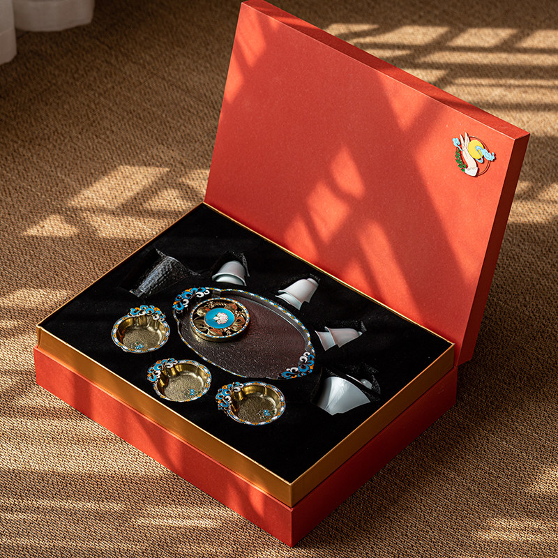 墨匠创意宫廷风珐琅彩黑檀茶具套装莲蓬雨露锌合金节庆赠品礼盒装
