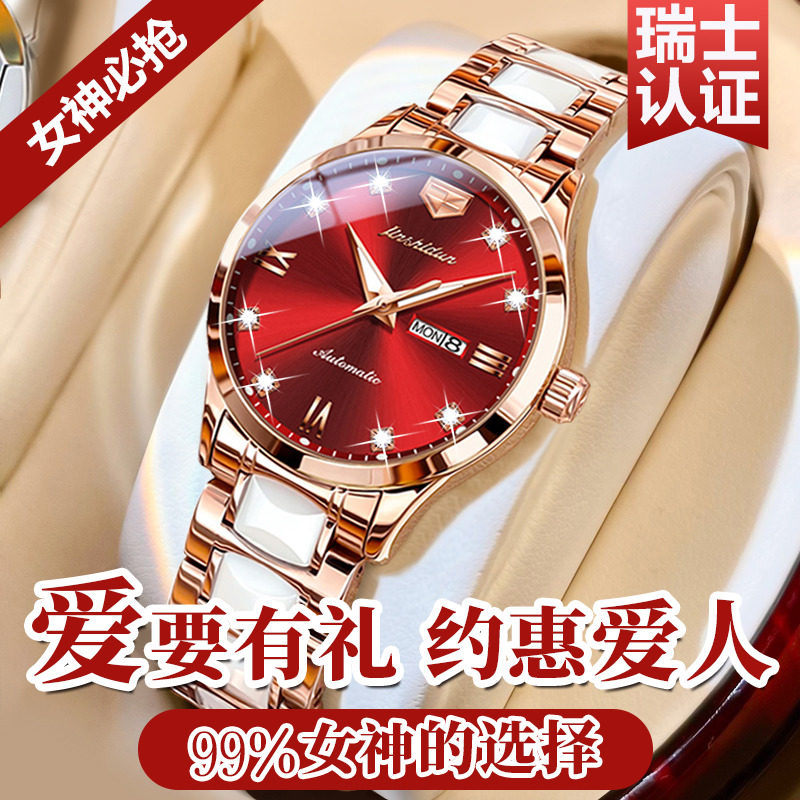 圣诞节礼物进口机芯瑞士正品牌2025新款女士手表女陶瓷轻奢机械表
