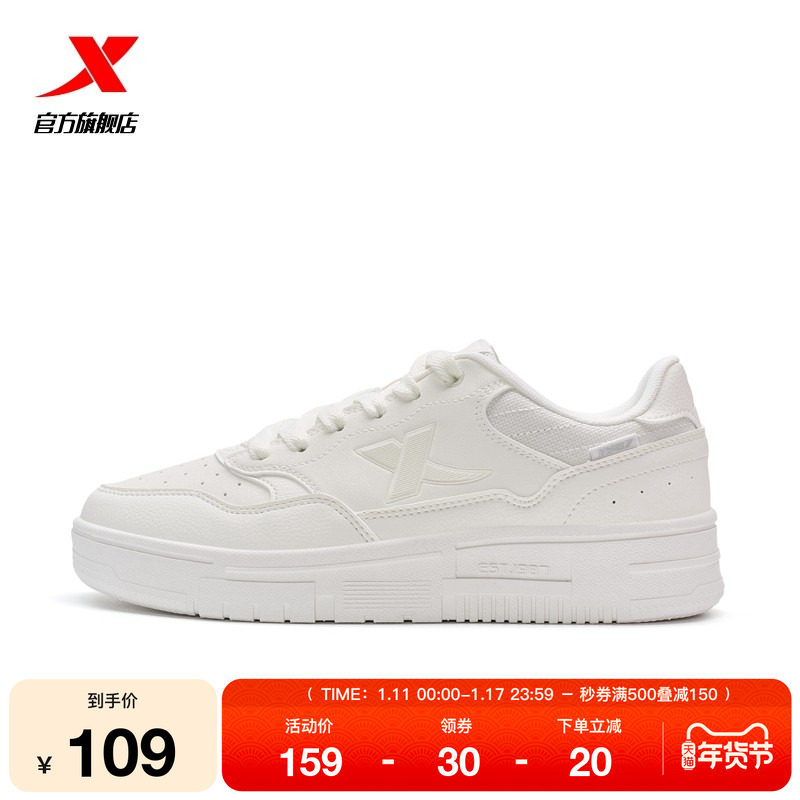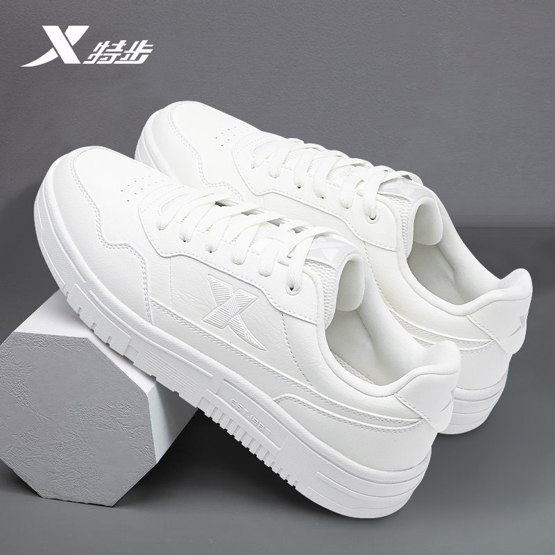 特步男鞋百搭小白鞋2026新款学生白色低帮厚底休闲板鞋软底运动鞋