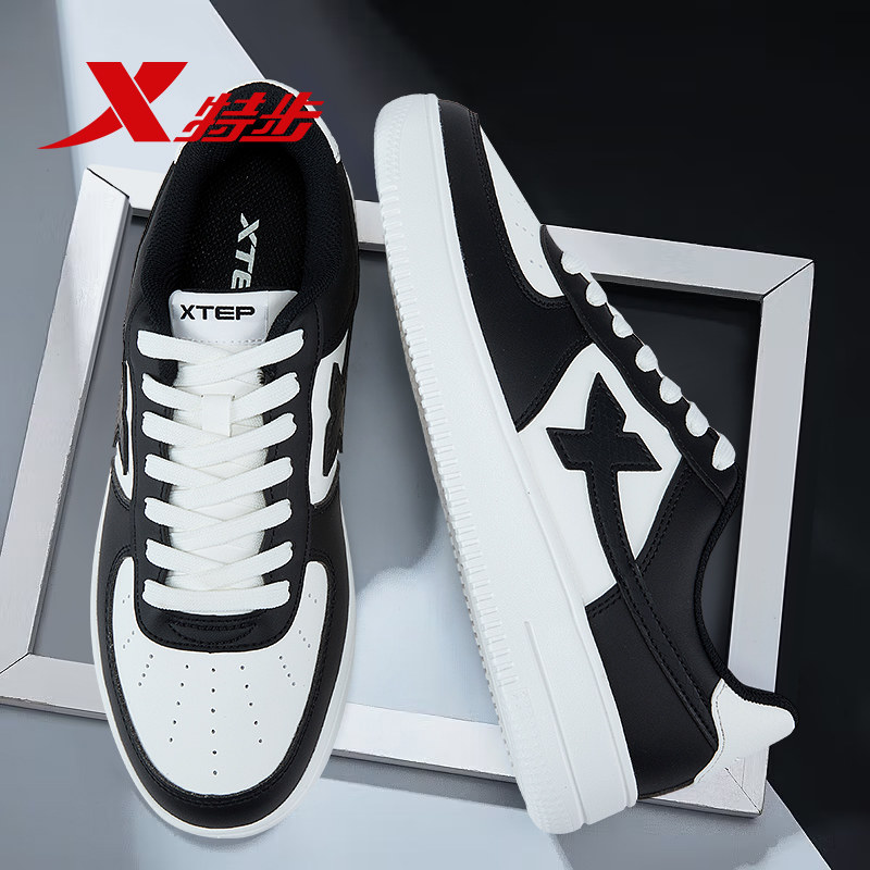 特步男鞋2025新款秋季青少年板鞋学生轻便运动鞋皮面防水休闲鞋男
