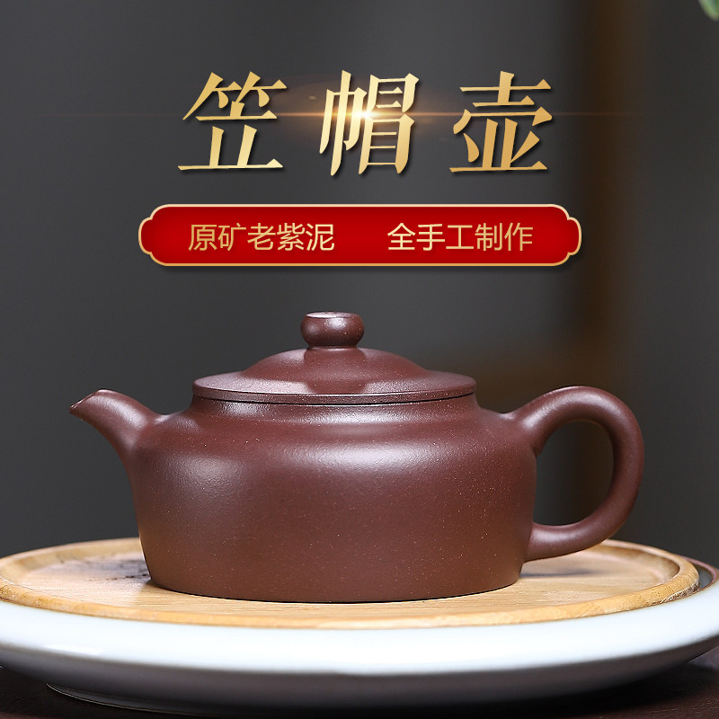 宜兴紫砂壶纯全手工功夫茶壶泡茶中式名家原矿老紫泥笠帽壶240cc