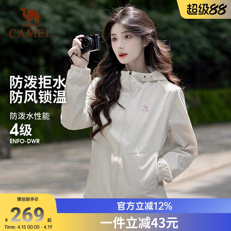 骆驼运动登山服外套女士秋冬加绒连帽夹克户外防风防水休闲茄克男