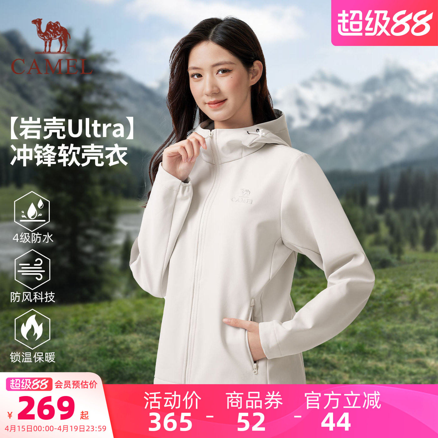 岩壳Ultra|骆驼女装软壳衣外套26春秋防泼水防风加绒短款休闲外套
