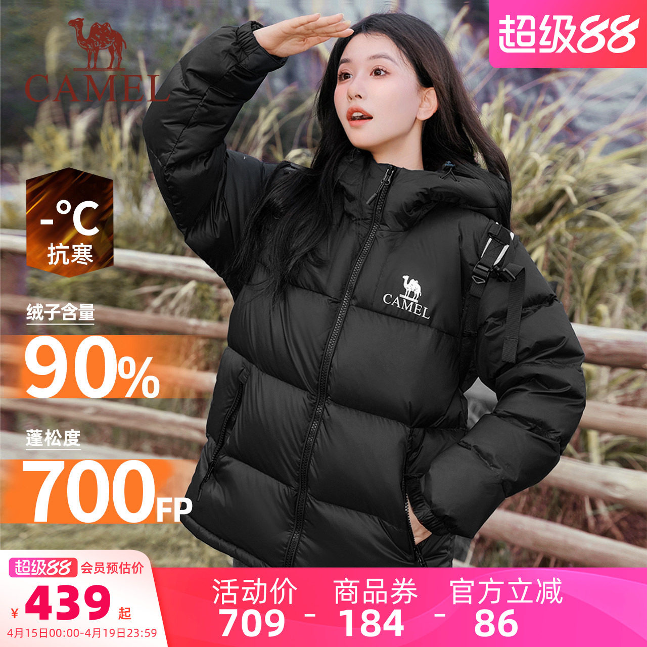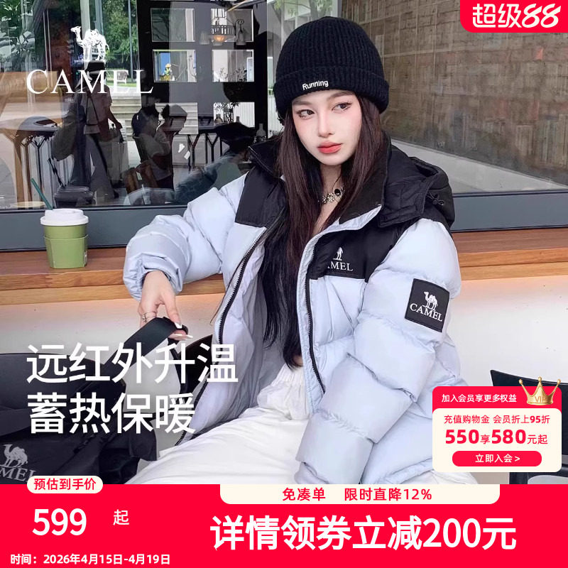 骆驼羽绒服女2025冬季新款热反射升温保暖加厚连帽面包服短款外套