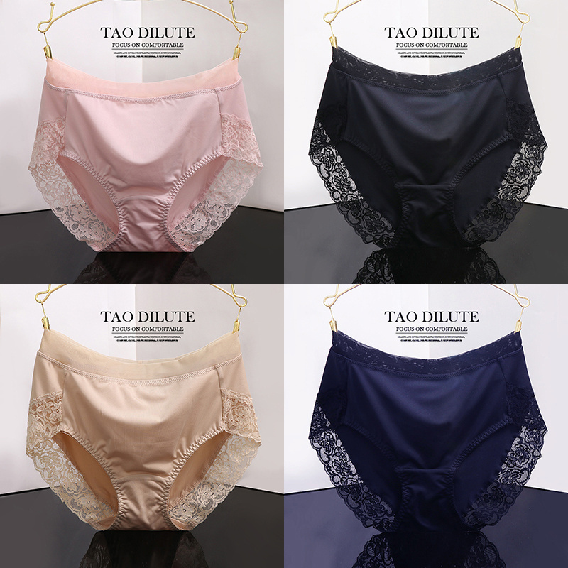 法式蕾丝内裤女无痕桑蚕丝抗菌大码中腰亲肤透气性感女士三角裤头