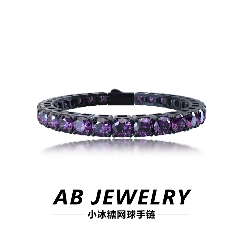 AB欧美嘻哈弹簧扣单排钻冰糖网球紫水晶手链轻奢小众精致男女款