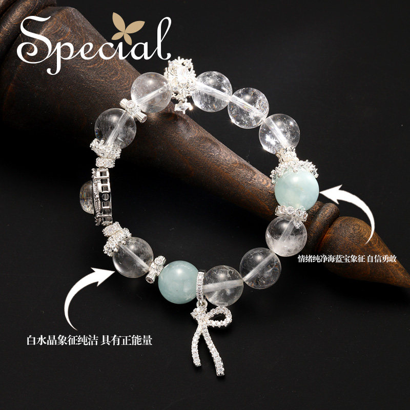 SPECIAL欧美轻奢海蓝宝白水晶弹力手链手串手环女2026年新款礼物