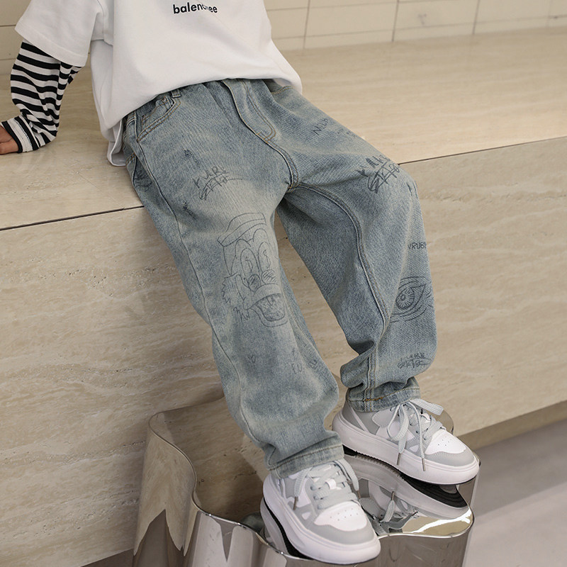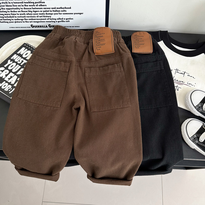潮范男大童直筒工装阔腿牛仔裤春装休闲裤长裤儿童宽松裤子春秋款