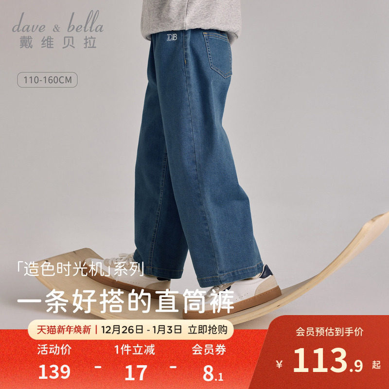 戴维贝拉儿童牛仔裤2026男童新款纯棉长裤中大童直筒裤春装休闲裤