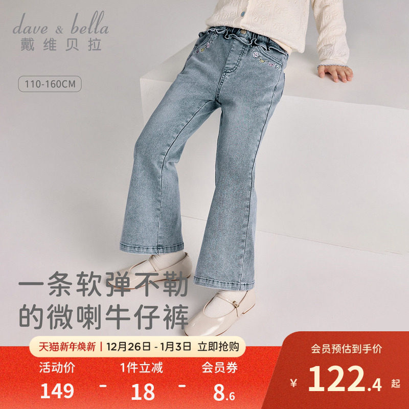 戴维贝拉儿童牛仔裤女童2026新款长裤中大童洋气微喇裤春装休闲裤