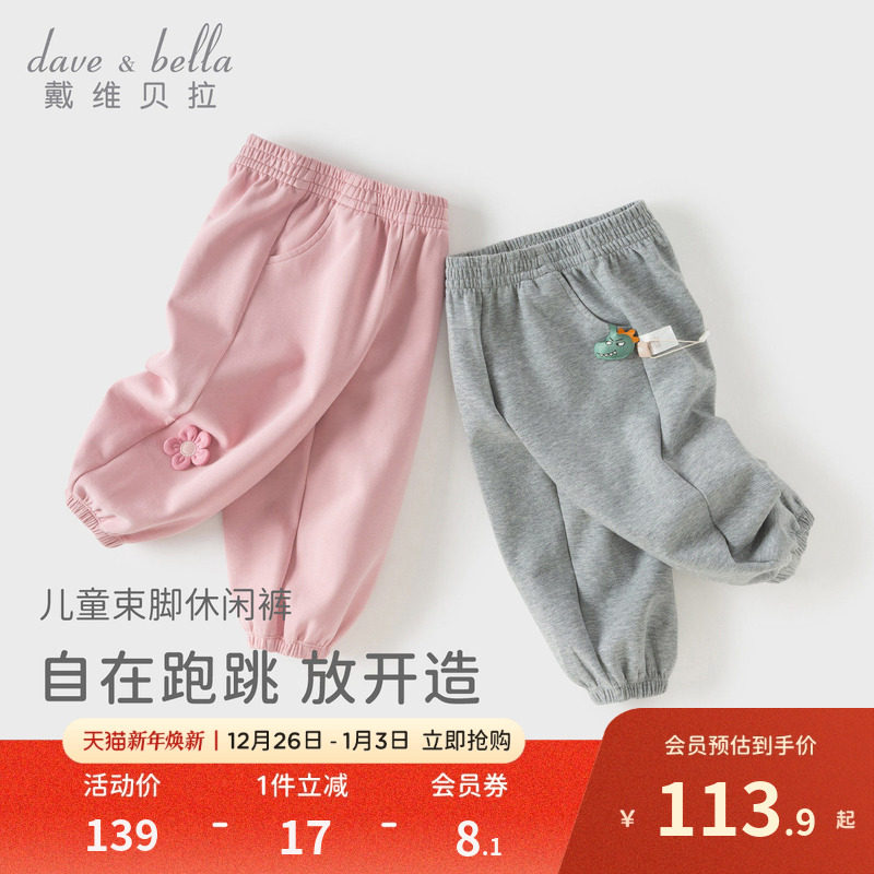 戴维贝拉女童A类裤子男童束脚裤2026新款春装休闲裤儿童宝宝卫裤